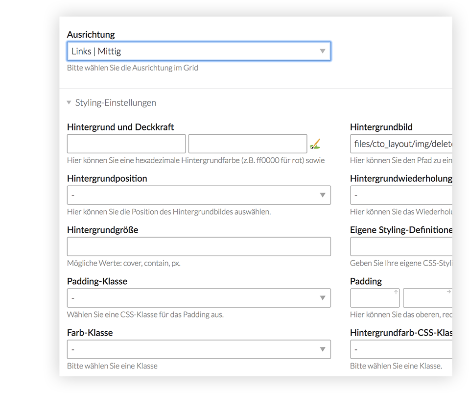 Design-Settings on Articles and Grid-Columns